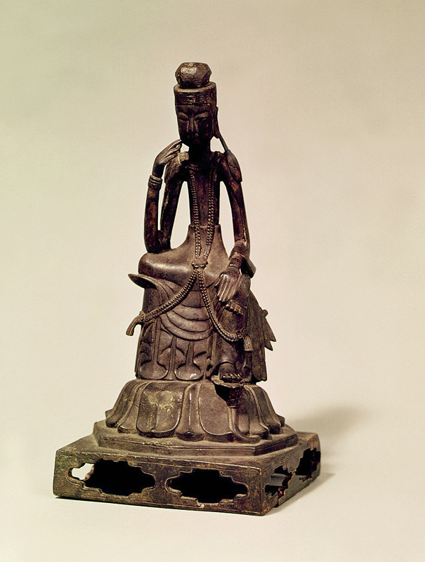 금동미륵보살반가사유상(金銅彌勒菩薩半跏思惟像)은 왼다리를 내리고 걸터 앉아서 오른손을 들어 두 손가락을 살짝 뺨에 대고 생각하는 듯한 자세를 취하고 있는 미륵보살상이다.