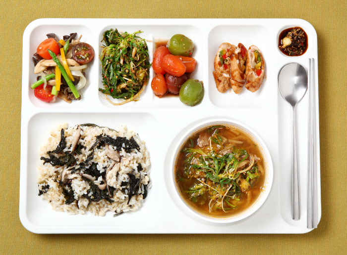방울토마토, 냉이, 닭가슴살을 이용한 단체급식 상차림