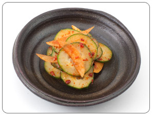 오이 34.8(g), 양파 4.3(g), 식초 0.8(g), 파 0.8(g), 참기름 0.7(g), 고춧가루 0.7(g), 마늘 0.5(g), 깨 0.5(g), 설탕 0.4(g), 소금 0.3(g) |