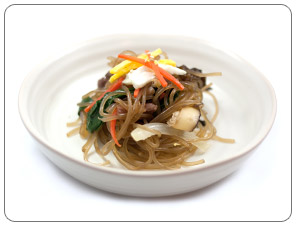 당면 24.8, 시금치 15.5, 쇠고기(등심) 12.5, 양파 11.8, 당근 8.2, 간장 7.2, 표고버섯 5.3, 콩기름 3.0, 파 2.3, 설탕 1.9, 참기름 1.8, 목이버섯 1.6, 돼지고기(등심) 1.1, 마늘 0.8, 깨 0.7, 후추 0.1 |