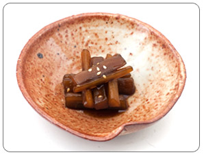 우엉 27.7(g), 간장 4.2(g), 물엿 2.8(g), 설탕 1.4(g), 깨 1.1(g), 콩기름 0.6(g), 마늘 0.6(g) |
