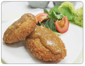 4. 적당히 나누어 가운데에 치즈를 넣고 밀가루-달걀-빵가루 순으로 무쳐서 튀긴다.