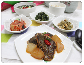 | 부재료 | 가자미조림,미역오이냉국,깻잎나물,땅콩멸치볶음 |