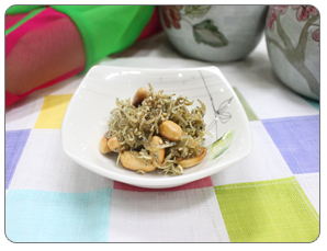 잔멸치 15g, 땅콩 15g, 올리고당 8g, 올리브유 5g, 통깨 약간 |